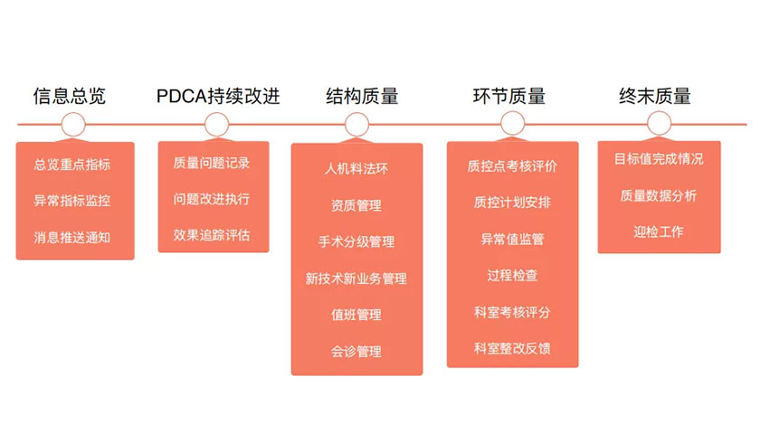 院级、科室级质量控制,各类医疗护理的数量与质量控制指标设定,相关统计报表生成,数据查询与展现处理等